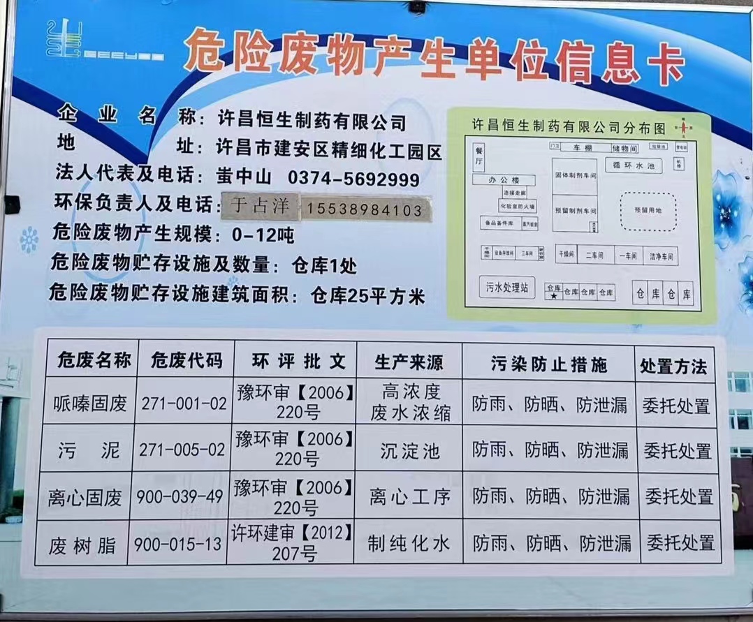許昌恒生制藥環保負責人變更公告